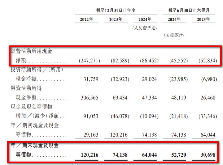 招股书显示,公司已连续多年处于净负债状态。净负债由2022年的5.98亿元飙升至今年上半年的10.78亿元。
